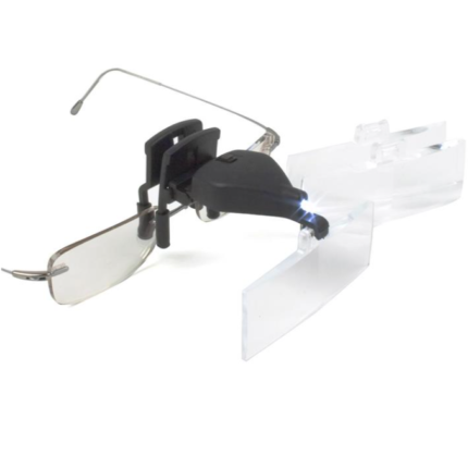 BINOKULARLUPE MIT KLEMME 3 LINSEN 1,5x- 2,5x – 3,5x LED-LICHT